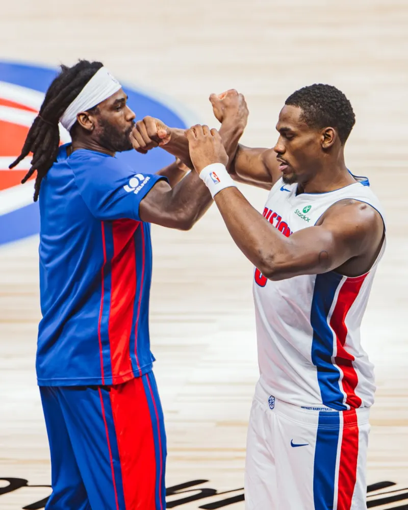 okooo-场均抢断盖帽联盟第一!活塞官方分享斯图尔特和杜伦的合影